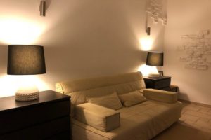 The double bedroom has a double bed. It also has a sofa, coffee table, chest of drawers and hangers for clothes.