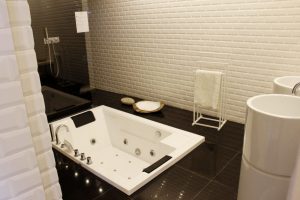 A casa de banho é completa, com lavatório, sanita, duche e banheira de hidromassagem. O sabonete para mãos, champô e gel de banho são fornecidos.